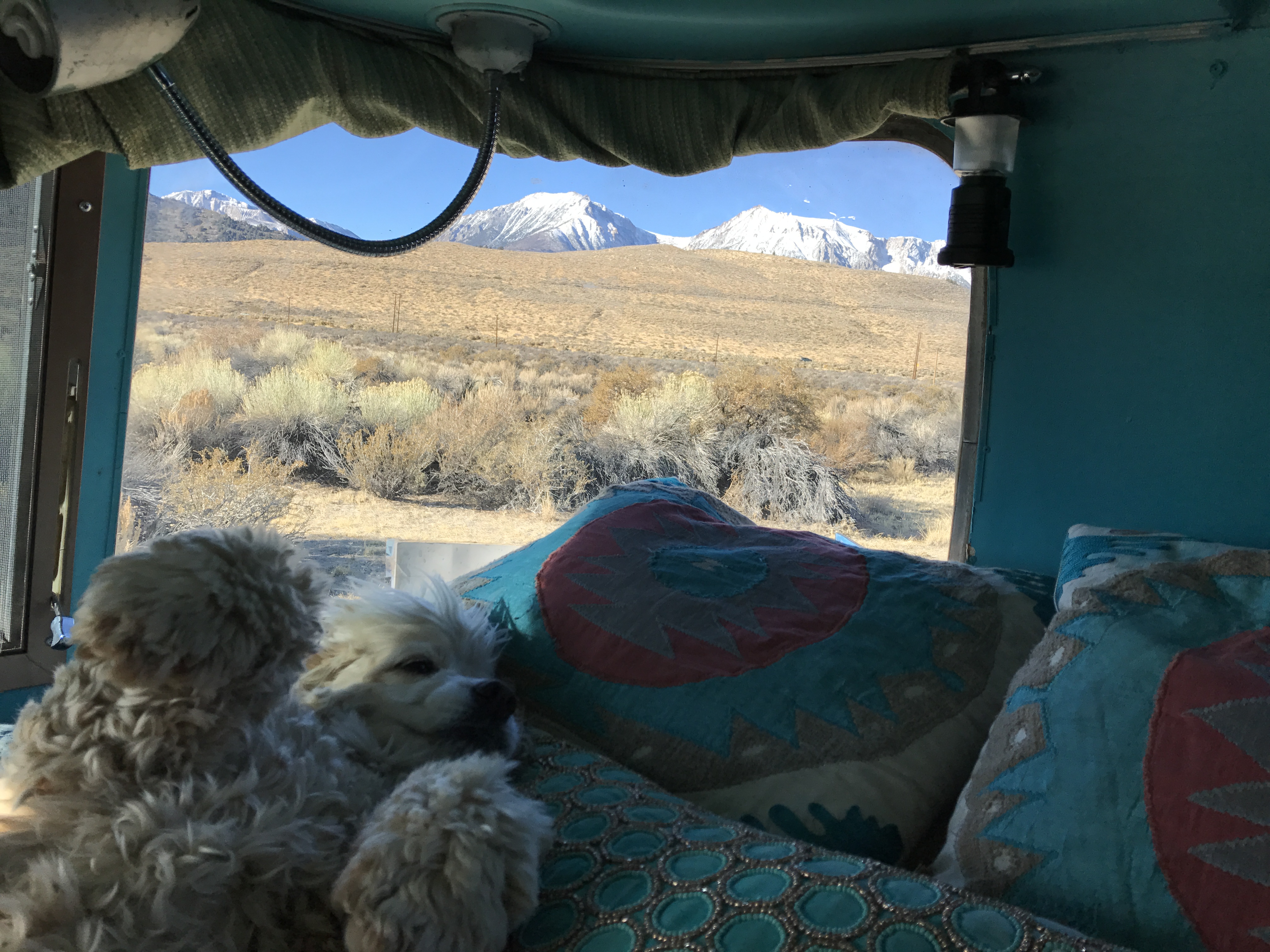 Alas, after a few days it was time to move on. We have mail waiting on us at Furnace Creek, Death Valley. Seems like, though, we have been sidetracked by the Alabama Hills and Mount Whitney. We may have procured the most epic campsite ever…Here is a sneak peek! ( yes that is a rainbow at sunrise!)